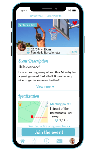 - Créer son propre événement. Vous souhaitez rencontrer des personnes mais aucun événement ne vous plait ? Pas de problème, vous pourrez créer votre propre événement sur l'application (aller à la plage, faire un basket...) et ainsi rencontrer les personnes avec les mêmes centres d'intérêt que vous.